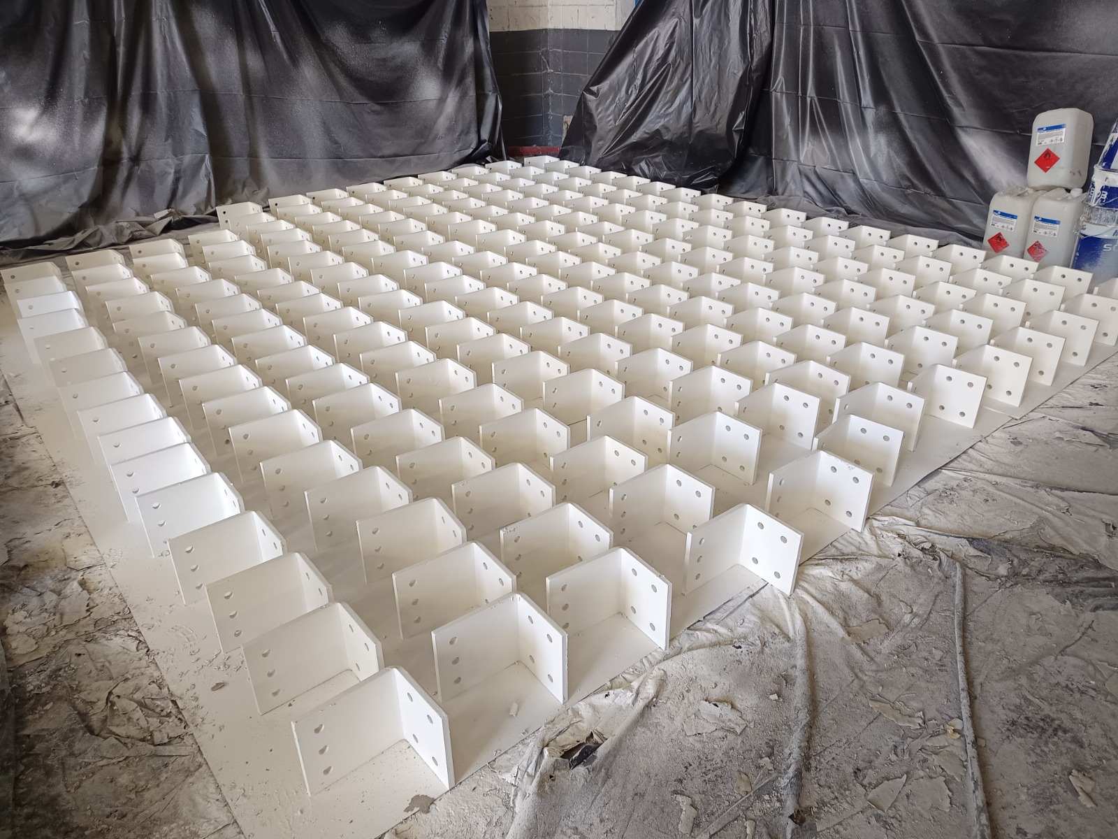 El reto diferencial fue la aplicación en nuestro taller. Esto exigió una coordinación perfecta con los tiempos de montaje y una logística de transporte que asegurara la integridad del acabado intumescente y estético hasta su llegada a obra. El resultado: piezas listas para montar con la máxima durabilidad y seguridad certificada.