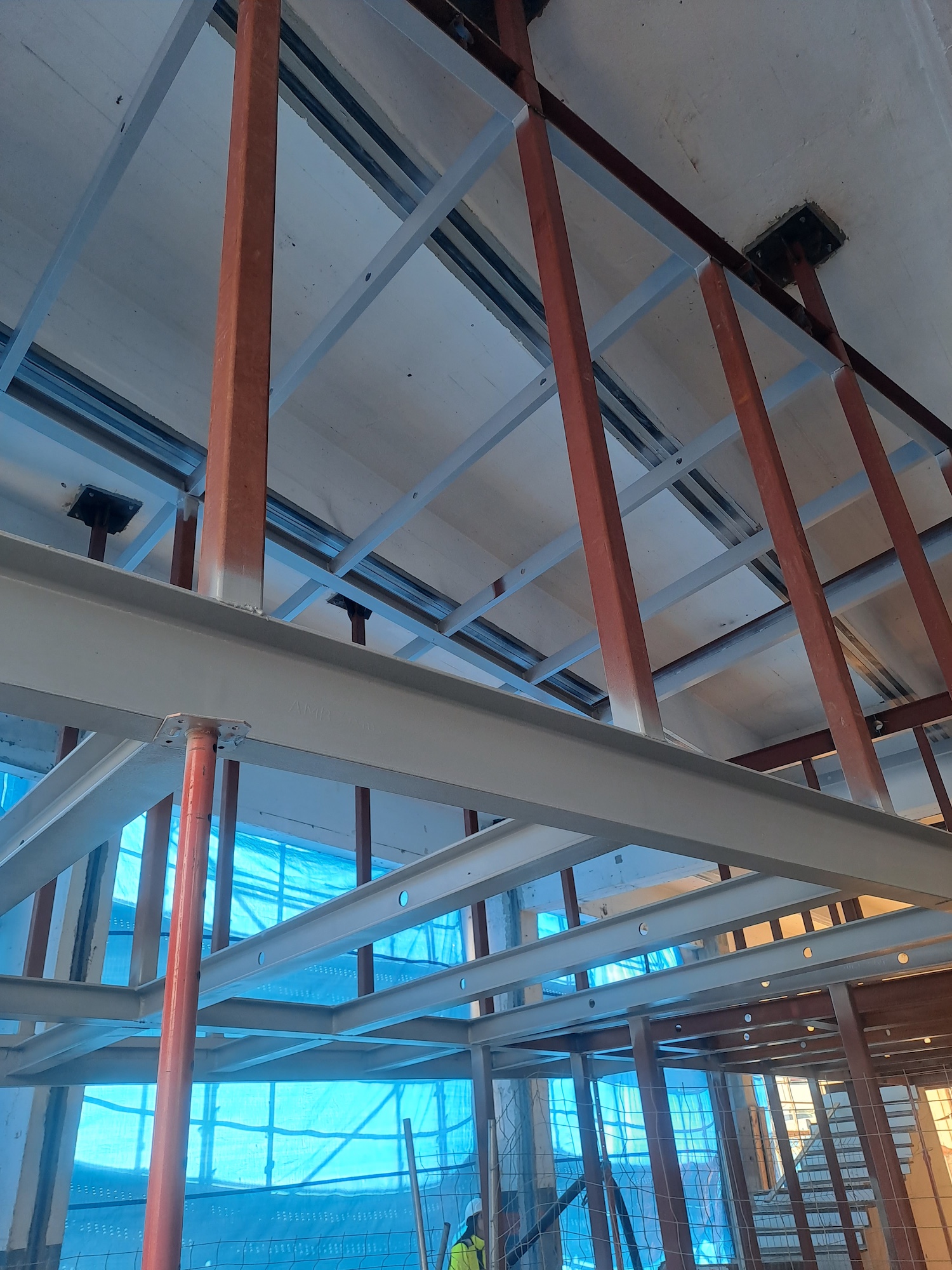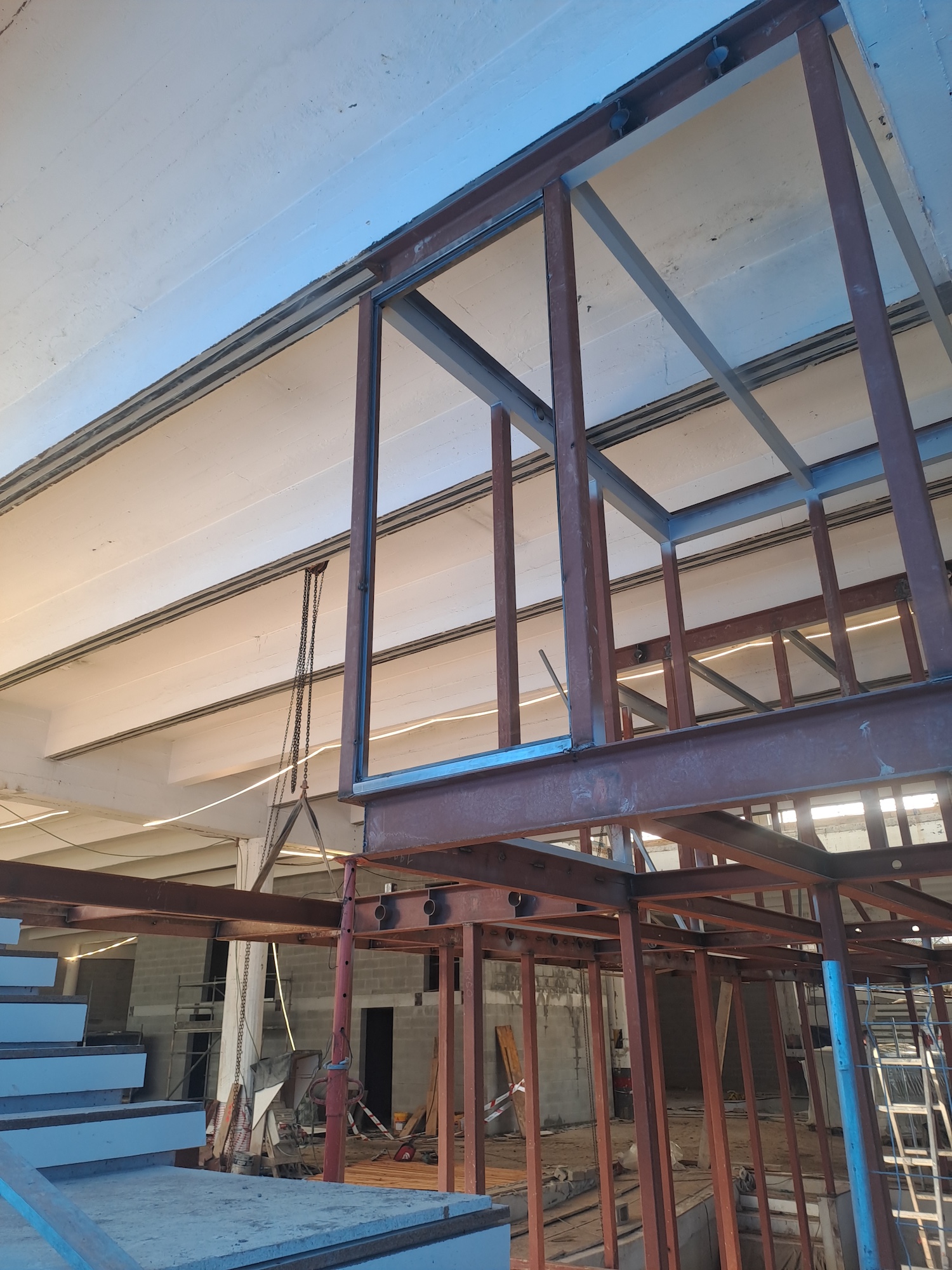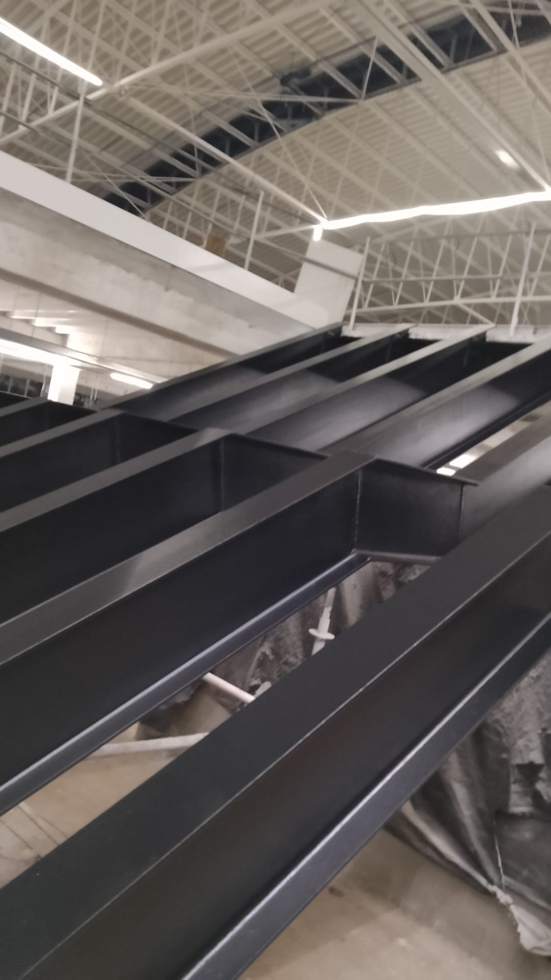 Nuestra intervención garantizó la durabilidad y seguridad mediante un sistema de tres capas: imprimación anticorrosiva, protección intumescente certificada y acabados decorativos en poliuretano. Superamos el desafío de coordinar seguridad técnica con las exigencias estéticas de un estudio de arquitectura de primer nivel.